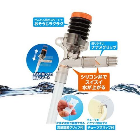 ●グリップ部分のスターターポンプを数回押すだけで簡単に排水がスタートし、水槽内のレイアウトを崩すことなく観賞魚や水草にもやさしい水換えを実現します。