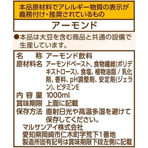 【マルサン 毎日おいしいローストアーモンドミルク 砂糖不使用の商品詳細】