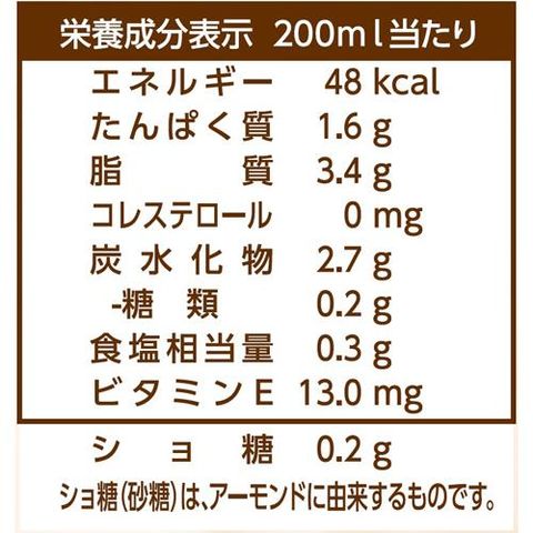 ●やさしい甘さでローストアーモンド風味が特徴の、毎日おいしく飲めるアーモンドミルクです。砂糖不使用。