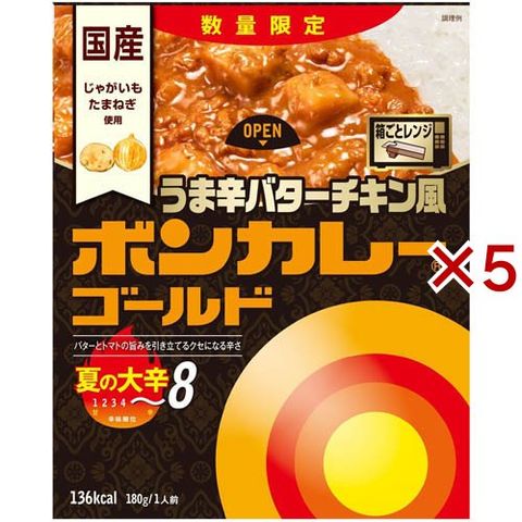ボンカレーゴールド うま辛バターチキン風 夏の大辛 (180g×5セット)