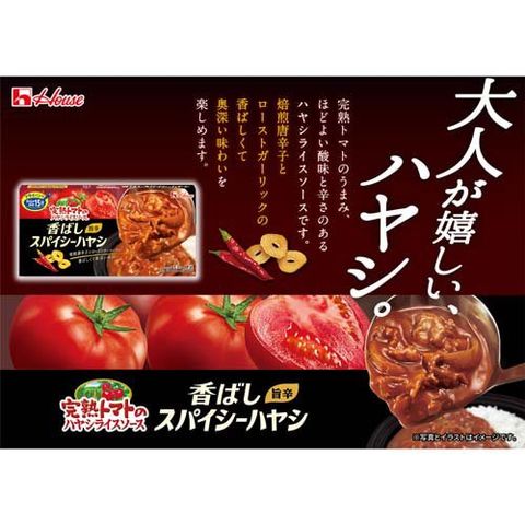 ●完熟トマトのうまみ、ほどよい酸味と香ばしくてスパイシーな味わいの大人向けハヤシライスソースです。