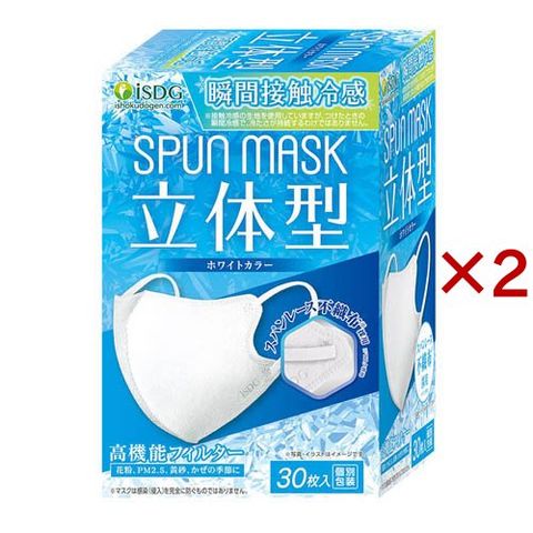 立体型スパンレース不織布カラーマスク 冷感タイプ ホワイト (30枚入×2セット)