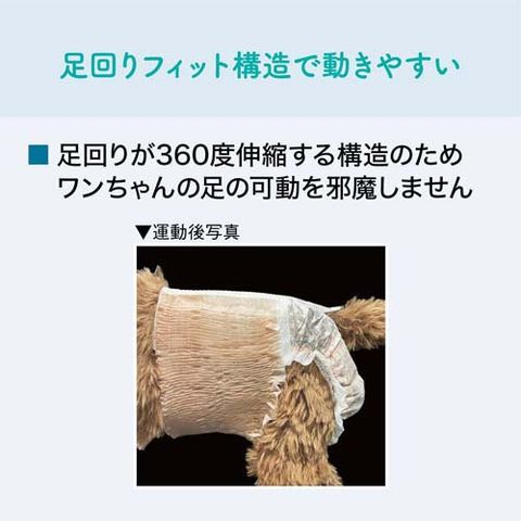・本品の特性上、表面材及び吸収体が柔らかく、噛んだり引っ掻いたりすると製品が破れ中身が飛び散ることがあります。愛犬が紙おむつを噛んだり引っ掻いたりして、破らないようご注意ください。