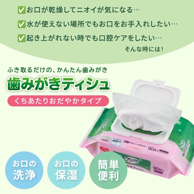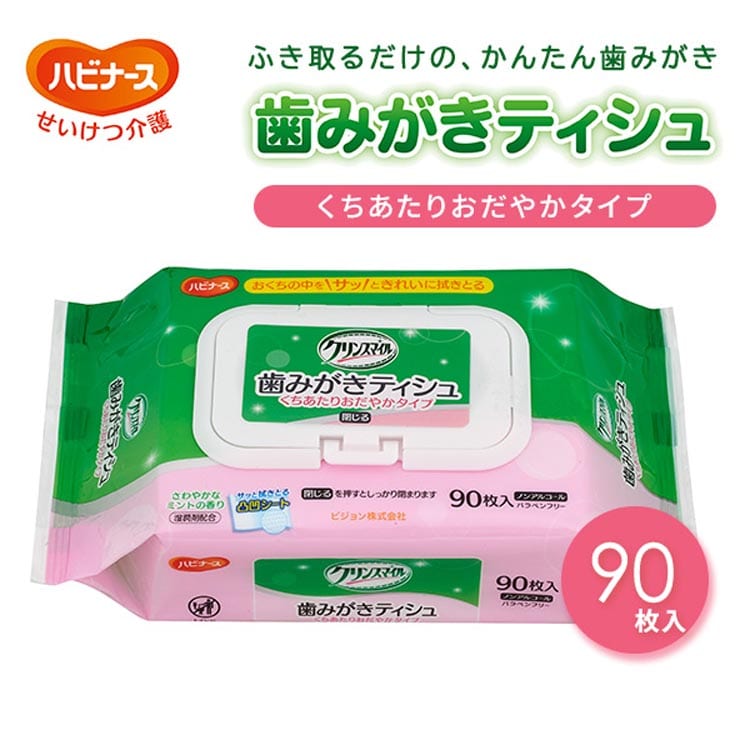 ハビナース 歯みがきティシュ くち当たりおだやかタイプ ノンアルコール (90枚入*2袋セット)