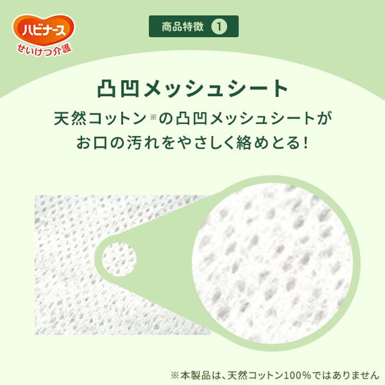 ●凸凹メッシュで汚れが取れるふき心地のよい天然コットンを使用。