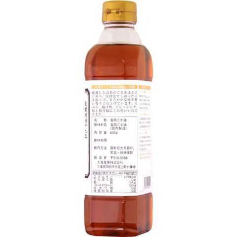 ●特に厳選した良質のごまをほどよく煎り、圧搾法でしぼった胡麻油です。まろやかな味と軽い香りに仕上げています。