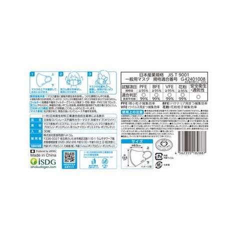 | マスク表地:ポリエステル マスク裏地:ポリプロピレン、ポリエチレン フィルター:ポリプロピレン 耳ゴム:ナイロン、ポリエステル、ポリウレタン |