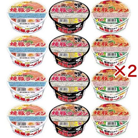 | 焼豚ラーメン/1食94g×4個、焼豚ラーメン黒 熊本とんこつ/1食85g×4個、焼豚ラーメン 長浜とんこつ/1食92g×4個 計3種12個 |