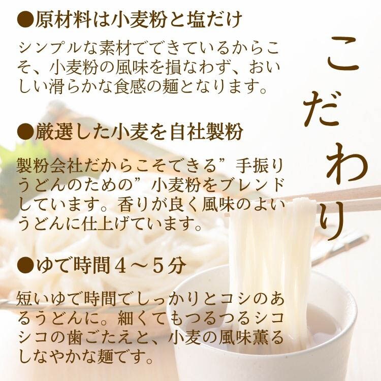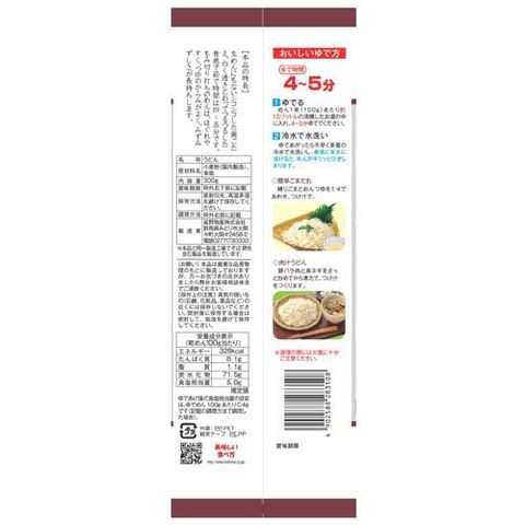| 乾麺100gあたり エネルギー:328kcal、たんぱく質:8.1g、脂質:1.1g、炭水化物:71.5g、食塩相当量:5.0g、推定値 茹で上げ後の食塩相当量の目安は、ゆでめん100gあたり0.4gです。(記載の調理方法で調理した場合) |