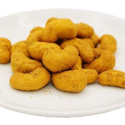 ●甘みのあるクリーミーなカシューナッツにノンフライの衣をつけ、唐辛子をしっかり利かせた旨辛スパイスミックスをまとわせました。