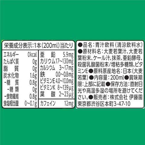 大麦若葉汁、大麦若葉粉末、ケール汁、抹茶、亜鉛酵母、殺菌乳酸菌粉末/増粘多糖類、ビタミンE