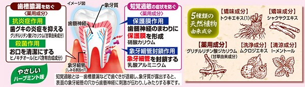 ●5種類の天然植物由来成分配合、歯槽膿漏を防ぎます。