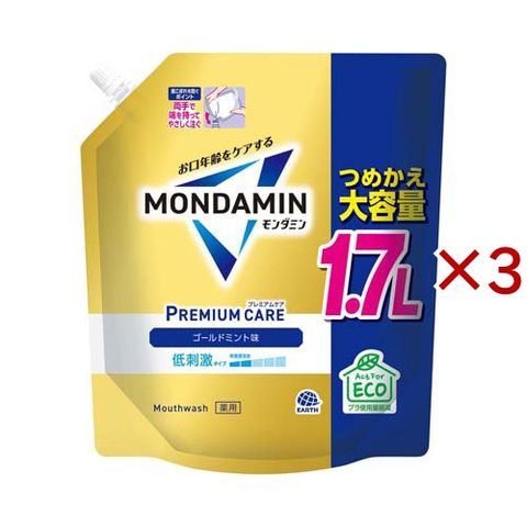 モンダミン マウスウォッシュ プレミアムケア ゴールドミント 低刺激 詰め替え 大容量 (1700mL×3セット)