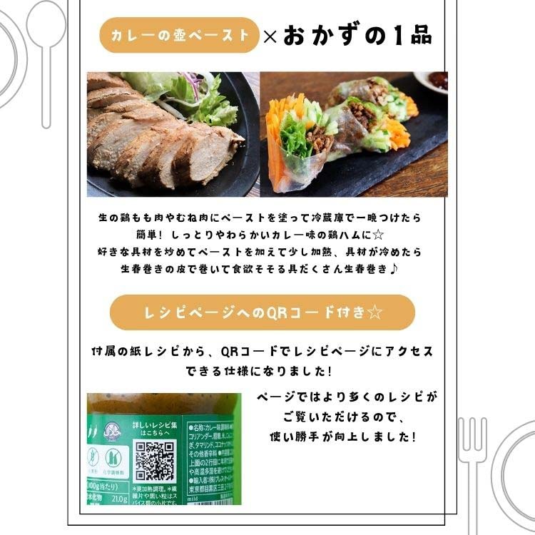 ●ペースト状で使いやすく、カレーはもちろん、肉や魚に塗って焼いたり、野菜炒め、パスタなど、多彩な料理に使えます。 これひとつで、料理のレパートリーが広がる、便利な調味料です。