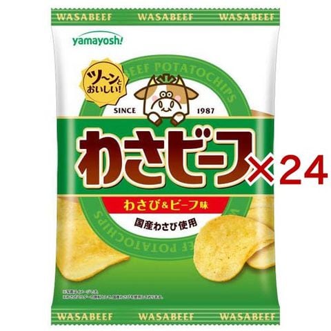 | じゃがいも(遺伝子組換えでない)(国産)、植物油脂、砂糖、たん白加水分解物、粉末しょうゆ、食塩、ビーフパウダー、粉末ソース、酵母エキスパウダー、ガーリックパウダー、レッドペッパー、オニオンパウダー、ぶどう糖、わさびパウダー/調味料(アミノ酸等)、香料、酸味料、甘味料(ステビア、スクラロース)、カラメル色素、香辛料抽出物、(一部に小麦・乳成分・牛肉・大豆・鶏肉・ゼラチンを含む) |
