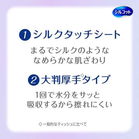 ●まさつ低減シルクタッチシートで洗顔後・お風呂上がり後のお顔の水分をやさしくオフ。
