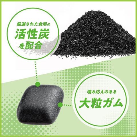 ●速攻息スッキリ!無味無臭の活性炭を配合した大粒ガム。