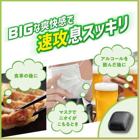●速攻息スッキリ!無味無臭の活性炭を配合した大粒ガム。