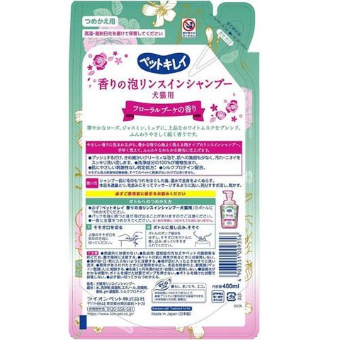 ペットキレイ 香りの泡リンスインシャンプー犬猫用 フローラルブーケの香り つめかえ (400ml×12セット)