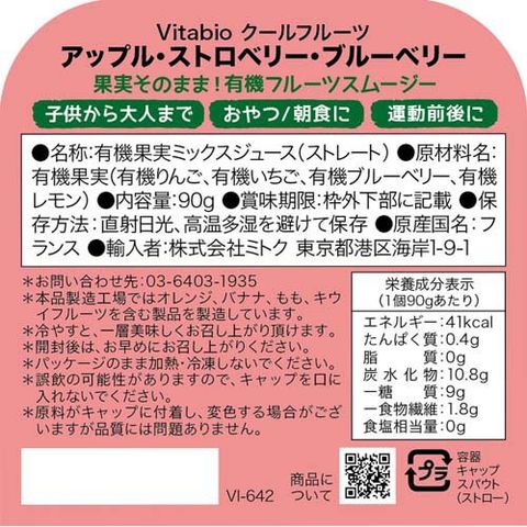 【ヴィタビオ 有機クールフルーツ アップル・ストロベリー・ブルーベリーの商品詳細】