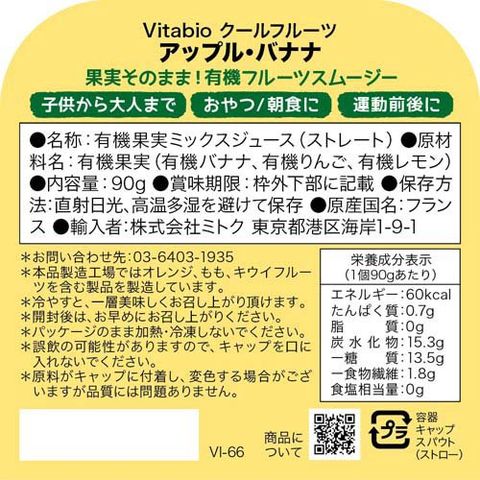 【ヴィタビオ 有機クールフルーツ アップル・バナナの商品詳細】