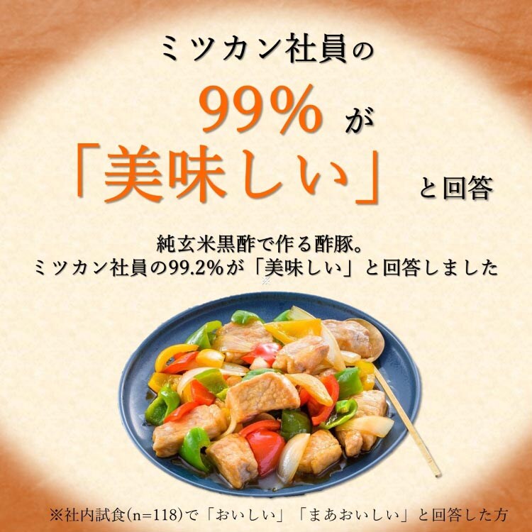 ●独自の醸造技術により、さわやかな味わいを実現し、くせの原因となっている成分を抑えた、飲みやすくお料理にも使いやすい黒酢です。
