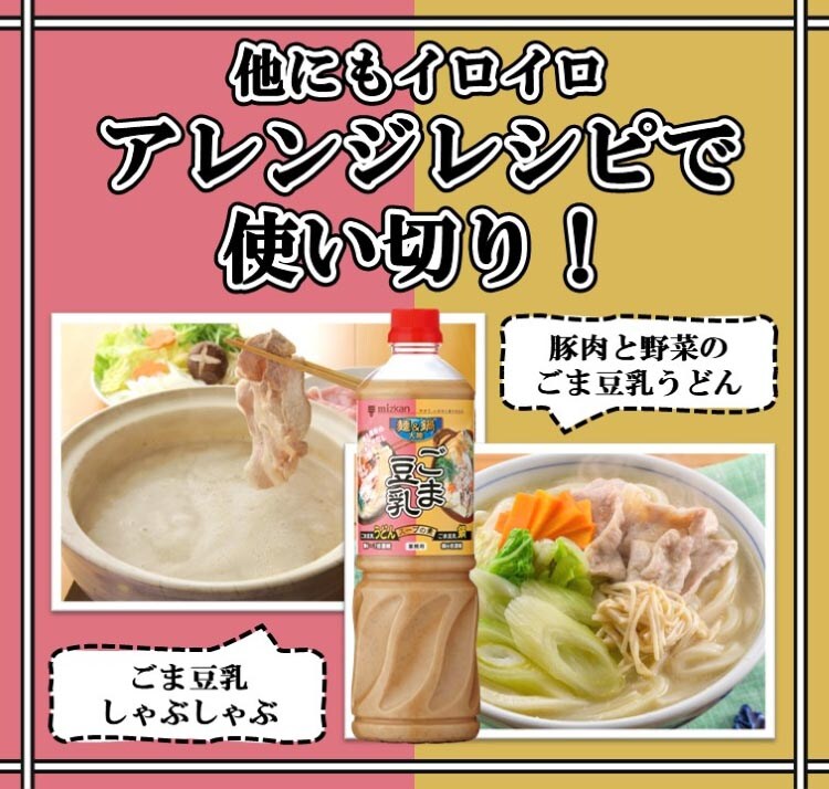 ●ごま豆乳うどん、ごま豆乳鍋のスープとしてはもちろん、ラーメン(らーめん)、しゃぶしゃぶにもお使いいただけます。