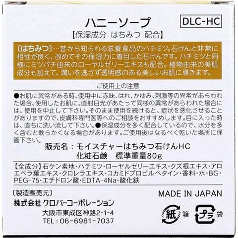 | 石ケン素地、ハチミツ、ローヤルゼリーエキス、クズ根エキス、アロエベラ葉エキス、クロレラエキス、コカミドプロピルベタイン、香料、水、BG、PEG-75、エチドロン酸、EDTA-4Na、酸化鉄 |