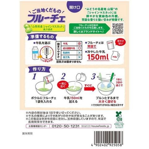 【ご当地くだものフルーチェ 山梨県産シャインマスカット果汁使用の商品詳細】