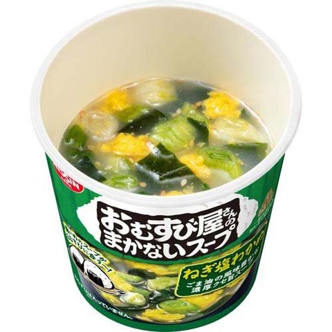 ●濃いめのスープがおむすびに合う~!ごま油の香ばしい風味とねぎの香りが食欲をそそる濃厚クセ旨スープ。