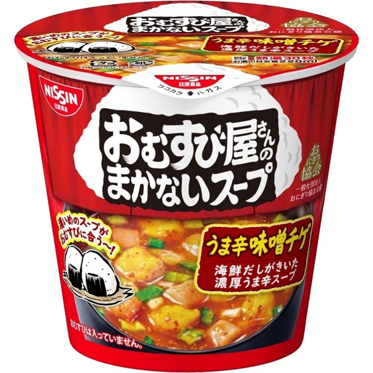●濃いめのスープがおむすびに合う~!海鮮だしの旨みと味噌のコクがたまらない濃厚うま辛スープ。
