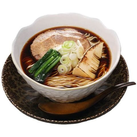 | めん(小麦粉(国内製造)、卵白粉、食塩、小麦たん白)、しょうゆ、動物油脂、魚醤(魚介類)、食塩、かつお節エキス、ジンジャーペースト、さば節だし、ほたてエキス、かつお節、さば節、魚介エキス、昆布エキス、醸造酢、肉エキス、オニオンエキス、しいたけエキス、そうだがつお節粉末/着色料(カラメル)、酒精、調味料(アミノ酸等)、かんすい、増粘剤(キサンタンガム)、酸化防止剤(ビタミンE)、香料、香辛料抽出物、(一部に卵・小麦・さば・大豆・鶏肉・豚肉・魚介類を含む) |