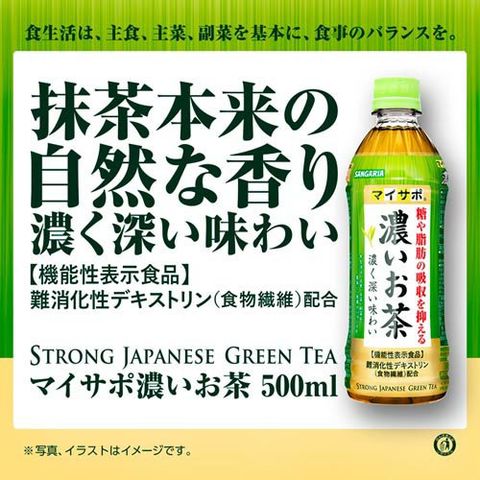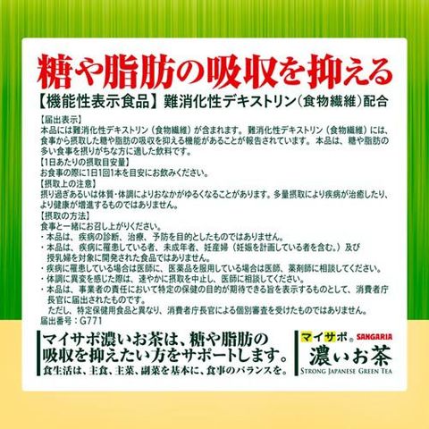 ●「マイサポ濃いお茶」は、難消化性デキストリンを配合した機能性表示食品で、糖や脂肪の多い食事を摂りがちな方に適したお茶です。