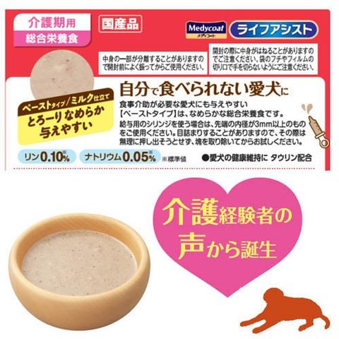 ●自分で食べられなくなった愛犬に。食べやすく、与えやすい、細かくすりつぶしたペーストタイプ。