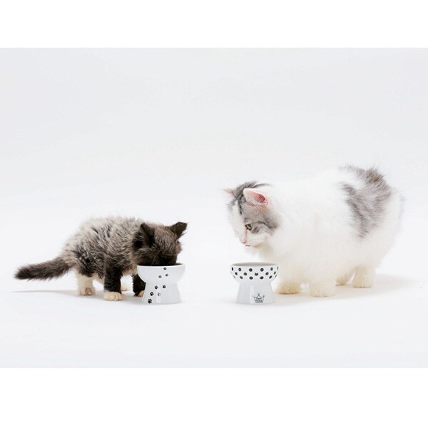 ●脚付だから、頭と喉を下向きに下げた状態で食事をしなくて済みます。高さのある食器で食べることにより、猫の負担が軽減されます。