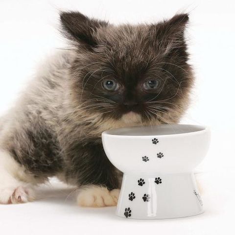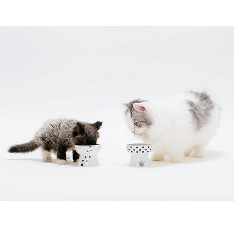●脚付だから、頭と喉を下向きに下げた状態で食事をしなくて済みます。高さのある食器で食べることによりフードの逆流を減らし、猫の負担が軽減されます。