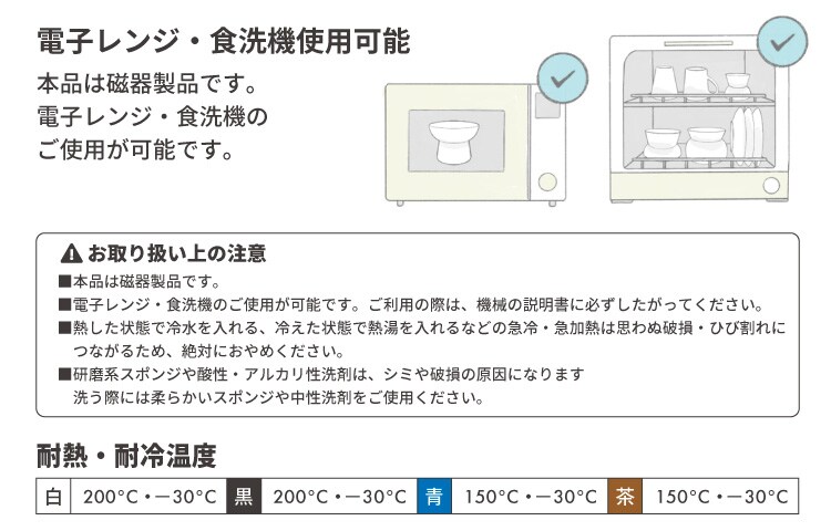 本品は磁器製品です。電子レンジ・食洗機のご使用が可能です。