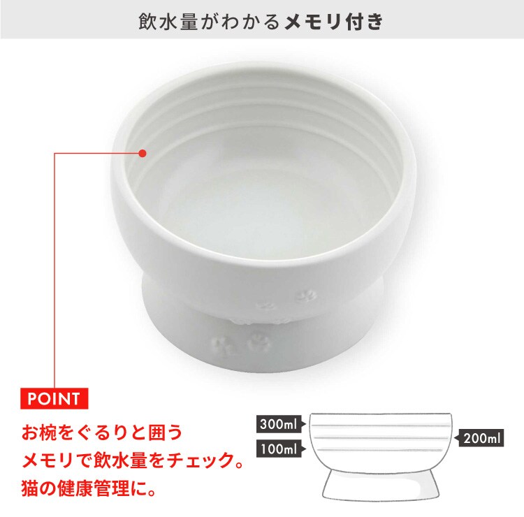 日本製ハッピーダイニングも、内側に目盛りをつけています。100ml毎に器をぐるりと囲う立体的なラインで、猫の飲水量を確認できます。