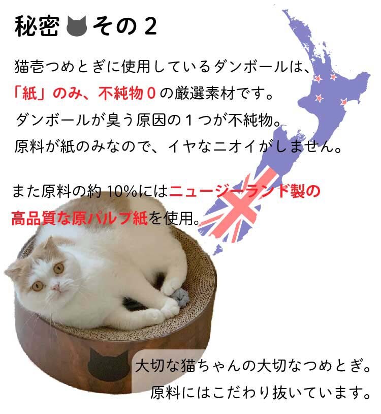 ●つめとぎは目の細かいダンボールを貼り合わせているため、爪とぎしやすく、研ぎくずが出にくく、長持ちします。
