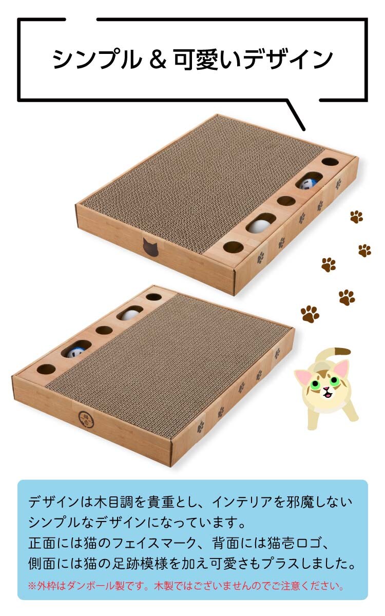 | ・製品サイズ:幅30*奥行40*高さ4.5cm ・材質:つめとぎ/ダンボール、ボール/ABS、ポリスチレン ※製品の仕様は予告なく変更することがあります。 |