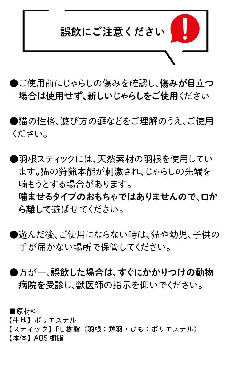 | 生地:ポリエステル スティック:PE樹脂(羽:鶏羽、ひも:ポリエステル) 本体:ABS樹脂 |