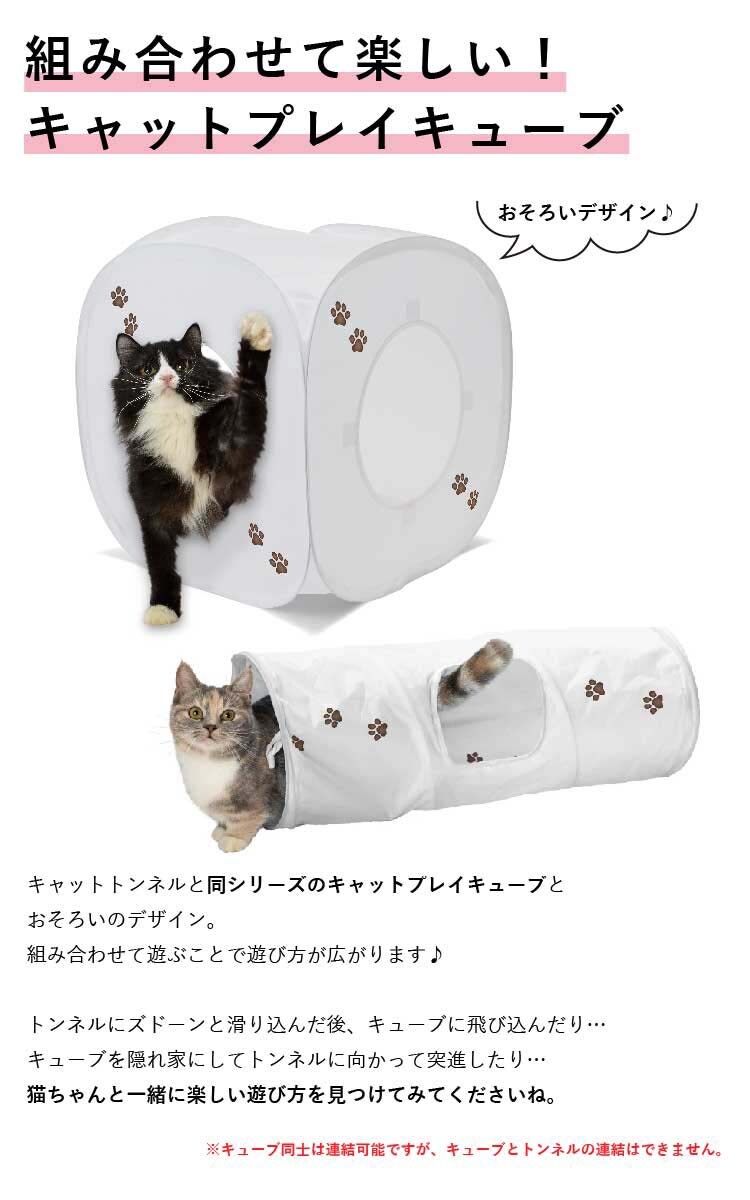 ほどよい広さなので、ベッドやハウスとしておやすみスペースにしたり、たくさん遊んだ後、トンネルの中に猫のおもちゃをまとめておけば簡易的なおもちゃ箱として使えたり・・・遊び方も使い方もいろいろです。