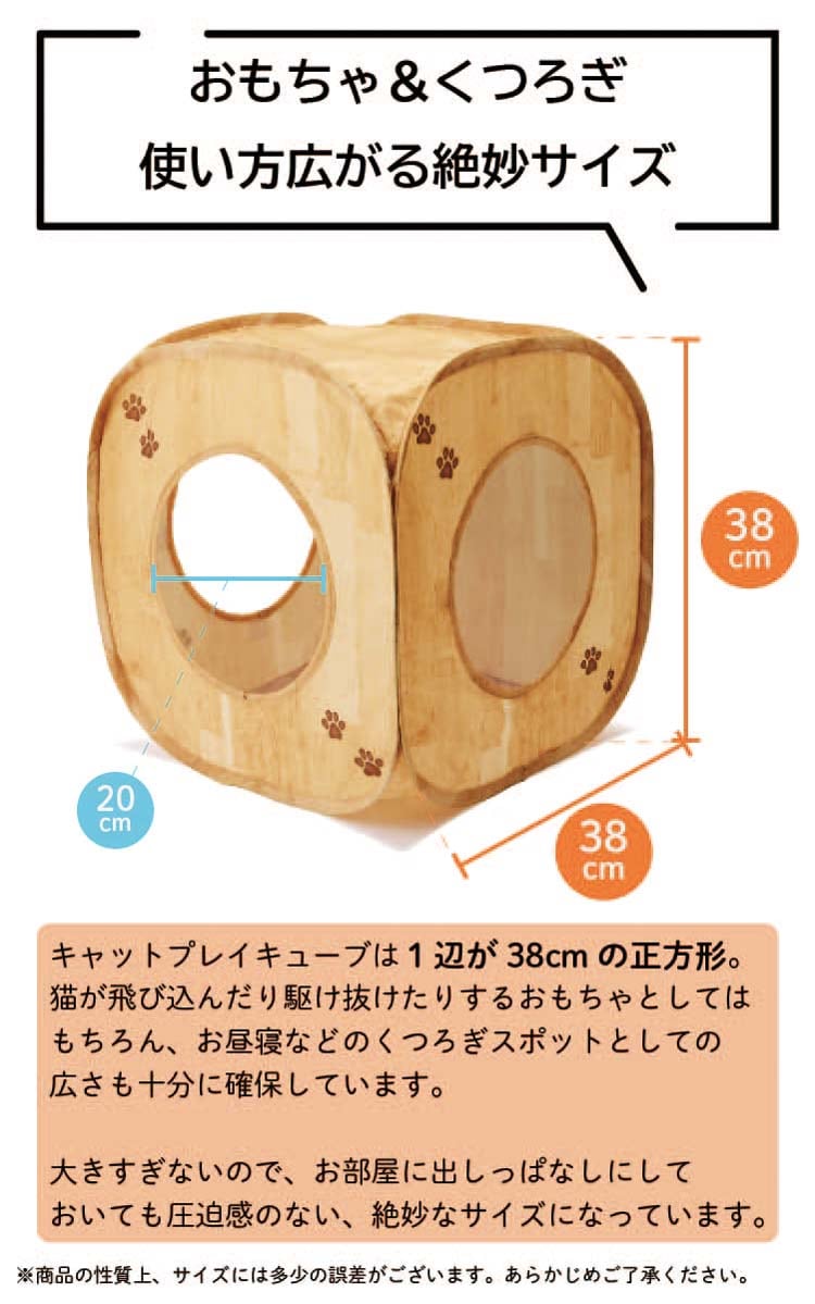 カラーは木目柄。キューブの外側には肉球模様入りで、可愛さを演出します。