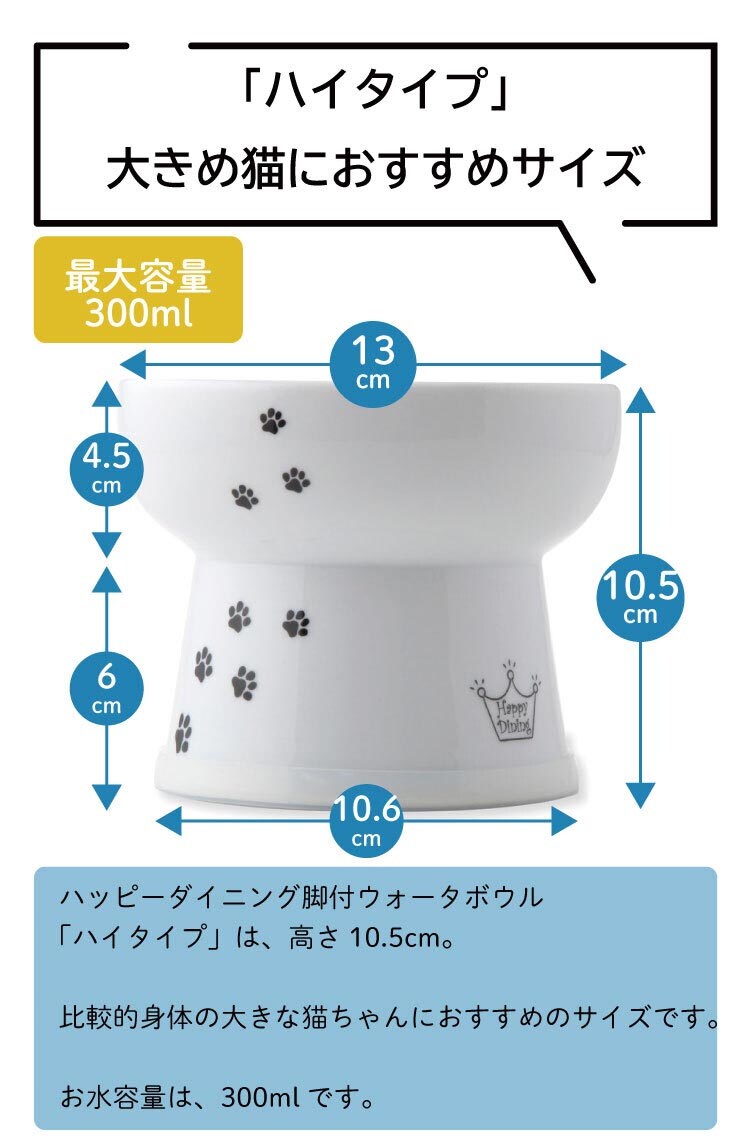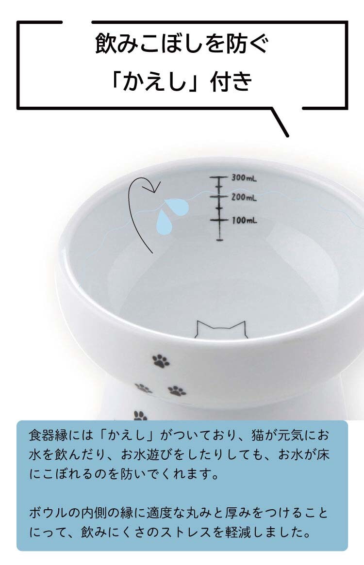 【猫壱 ハッピーダイニング 脚付ウォーターボウルハイタイプ 猫柄 シリコン付きの商品詳細】
