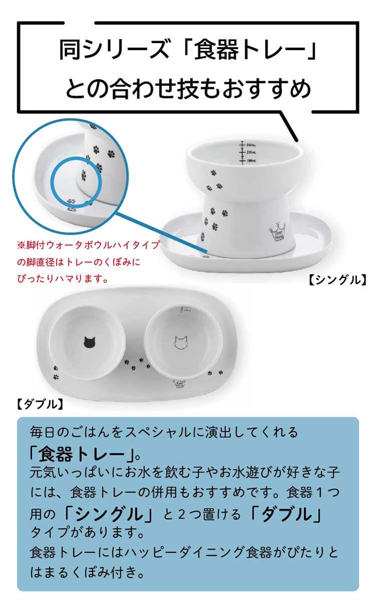 猫壱 ハッピーダイニング 脚付ウォーターボウルハイタイプ 猫柄 シリコン付き (20セット)