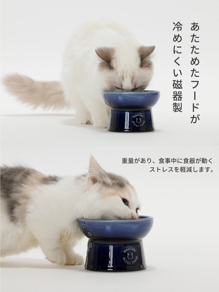 【猫壱 ハッピーダイニング 猫用 脚付フードボウル 日本製 ブルーの商品詳細】