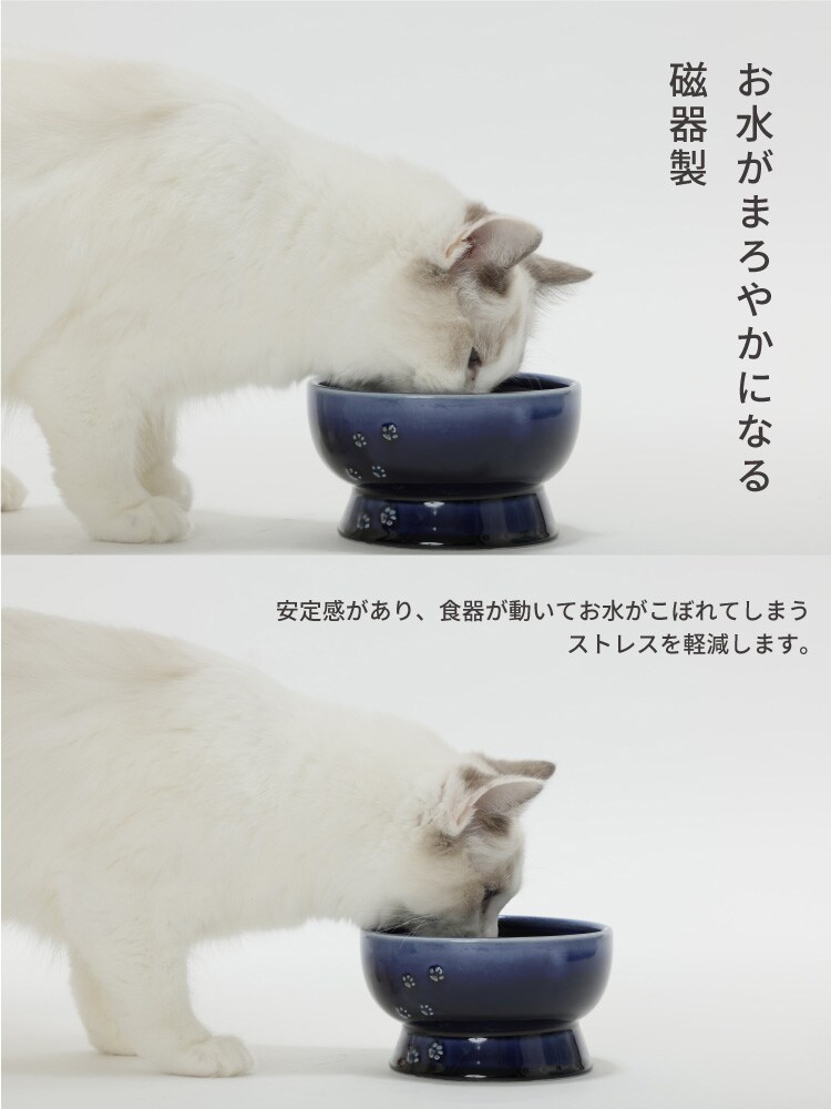 【猫壱 ハッピーダイニング 猫用 脚付ウォーターボウル 日本製 ブルーの商品詳細】
