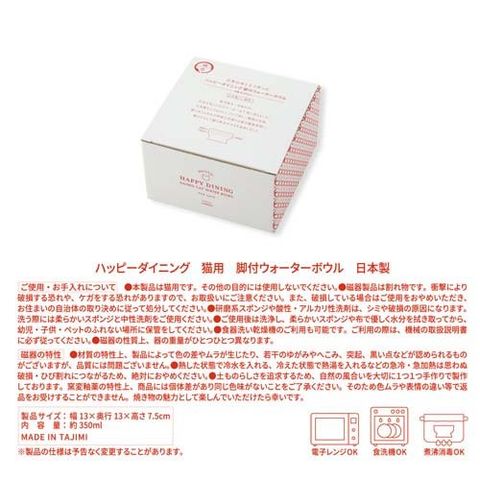 日本製ハッピーダイニングは、転写紙を一切使用しておりません。定番の肉球模様やハッピーダイニングのロゴは、立体的に表現。日本製の美しい釉薬の表現をお楽しみいただければ嬉しいです。