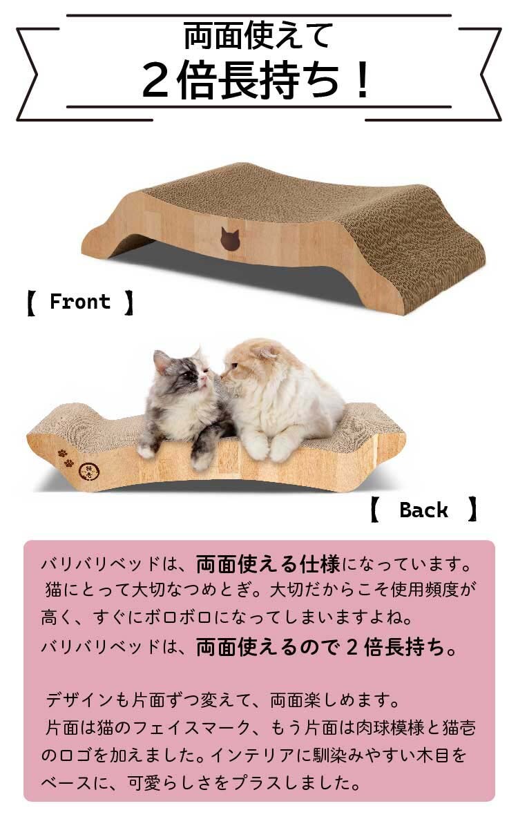 薄いタイプを使用することで密度が高くなり、猫のとぎ甲斐アップだけでなく、耐久性も持たせています。