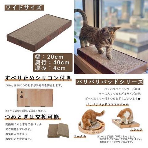 猫がのびのびつめとぎできるワイド感と、置く場所を選ばないコンパクトさが魅力です。